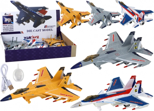 Lietadlo pri zapnutí vydáva zvuky štartujúceho stíhača, čo pridáva na autenticite a zosilňuje detskú predstavivosť pri hre.
