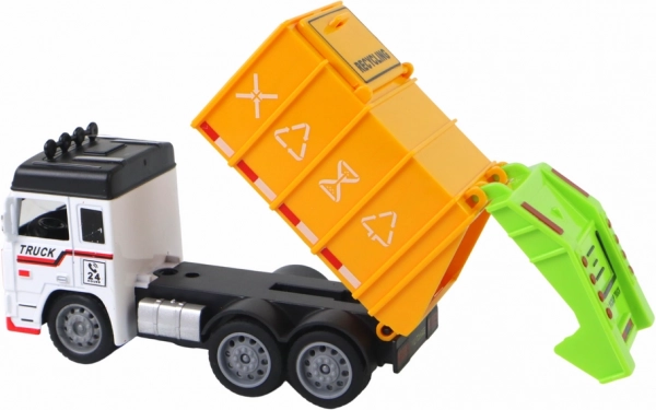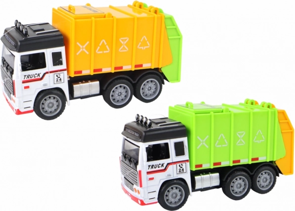 Realistické smetiarenské auto s prívesom poteší malých vodičov. Ponúka trecí pohon, otvárací príves a horný otvor na vhadzovanie „odpadu“, je z odolného plastu a dostupné v 2 farbách. Kompaktné rozmery 13 × 7 × 5 cm, bezpečné vďaka certifikácii CE a EN71 pre deti od 3 rokov.