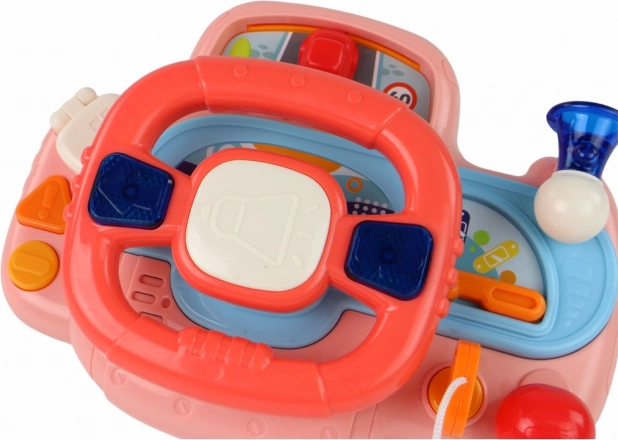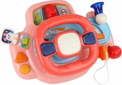 Interaktívny volant v ružovej farbe je hračka, ktorá deťom poskytuje nielen zábavu, ale aj interaktívne učenie a rozvoj motorickej koordinácie a zmyslových zručností.