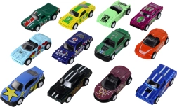 Sada autíčok v mierke 1:64 poteší každé dieťa, ktoré miluje preteky a zbieranie modelov. Každé autíčko má iný tvar a farbu (modrá, zelená, oranžová, ružová) a je vybavené frikčným pohonom – stačí autíčko natiahnuť dozadu a pustiť a vyrazí vpred.