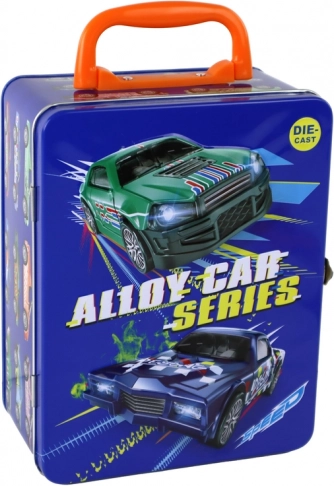 Súčasťou je štýlový kovový kufrík v tmavomodrej farbe s motívmi športových áut, kovovým zapínaním a sklopnou rukoväťou. Vo vnútri nájdete 18 boxov na prehľadné uloženie modelov; do 6 z nich môžete vložiť svoje obľúbené kúsky. Bezpečné uloženie chráni autíčka pri prenášaní aj skladovaní.
