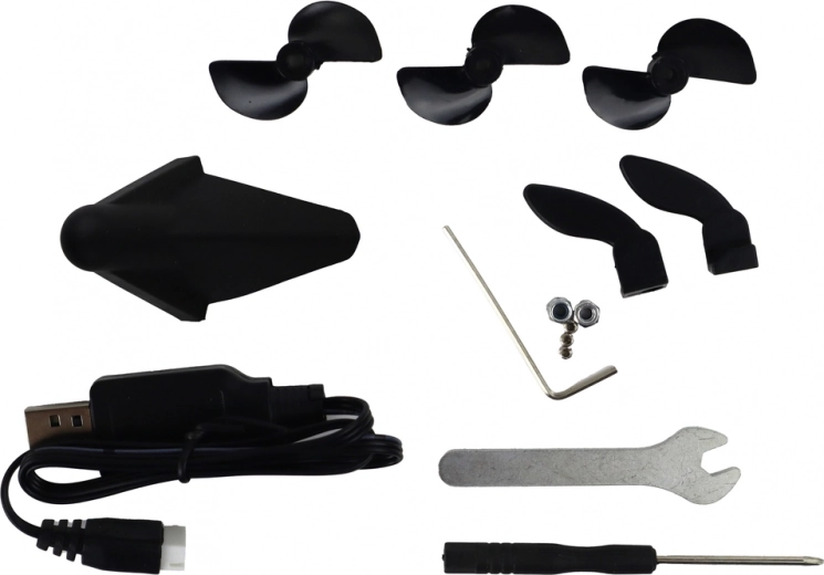 Súčasťou stavebnice sú aj doplnky, ako je kábel k batérii, stojan na motorový čln, ktorý udrží stabilitu na súši, dve vymeniteľné vrtule a dva vymeniteľné kormidlá.