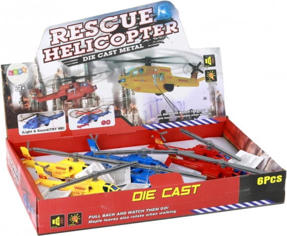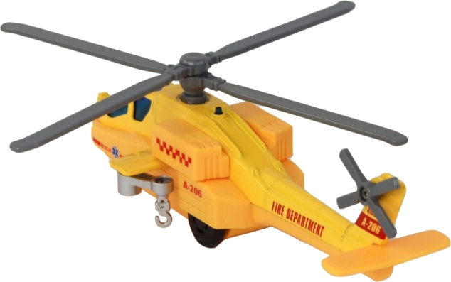 Hračka je vyrobená z hliníkového materiálu, čo jej dodáva nielen pevnú štruktúru, ale aj vzhľad podobný skutočným záchranným vrtuľníkom. Každý model má zabudovaný pohon, vďaka ktorému sa po natiahnutí začne pohybovať a rotory sa točia, čo pridáva na realizme a zábave.