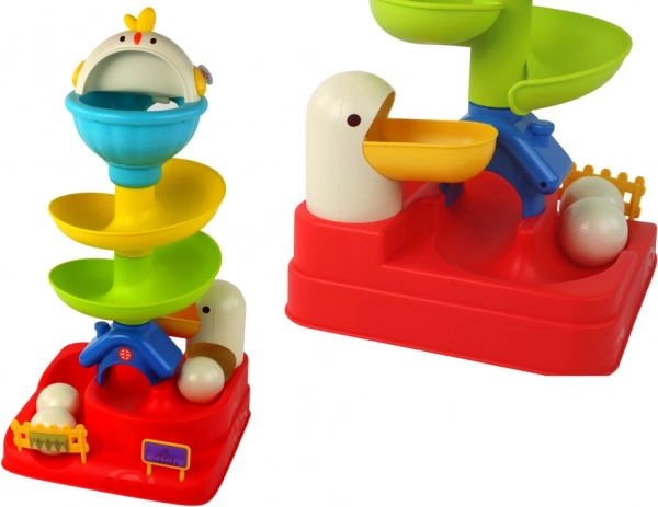 Táto interaktívna guľôčková zábava ponúka deťom farebnú dráhu vysokú približne 36 cm, po ktorej sa kotúľajú guľôčky pripomínajúce vajíčka. Kuriatko na vrchole dráhy dodáva hre zvukové podnety, ktoré podnecujú zvedavosť a pomáhajú rozvíjať kognitívne zručnosti.