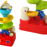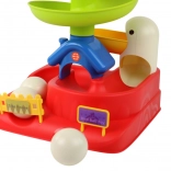 Horná časť s kuriatkom motivuje deti k opakovanej hre. Zvuky podnecujú vnímanie a udržiavajú pozornosť počas kotúľania guľôčok.