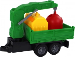 Ďalšou zaujímavosťou je príves so žeriavom. Rameno žeriava sa zdvíha, čo do hry vnáša prvok interakcie a kreativity. Dieťa môže zdvíhať a spúšťať kontajnery a hrať scény zberu a triedenia odpadu.