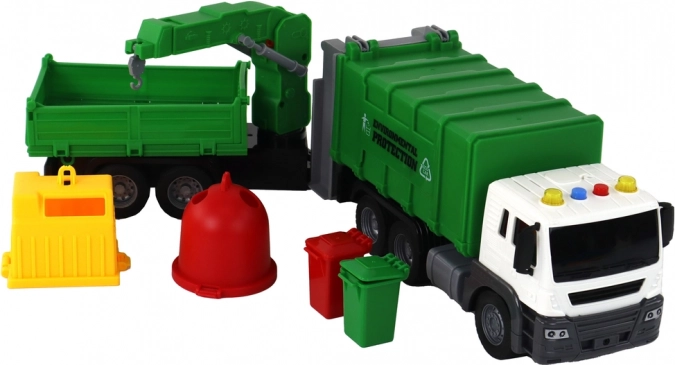 Nákladné smetiarske auto so žeriavom s trecím pohonom zelené 1:16