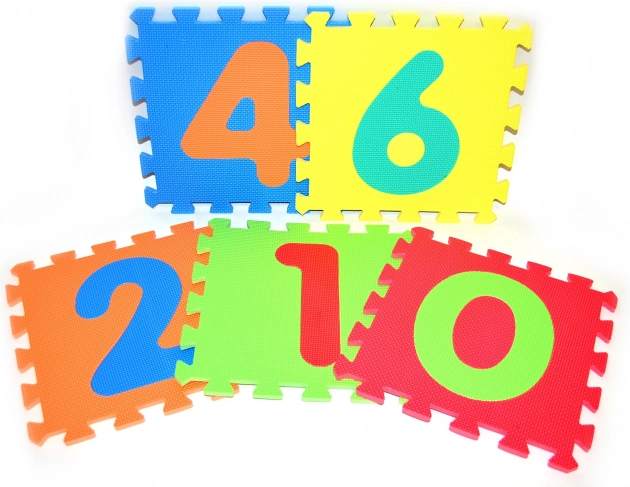 Penové podlahové puzzle s vrúbkovaným povrchom a vyberateľnými časťami, ktoré sú bezpečné pre deti. Pomáha s učením farieb, počítaním a rozvojom koordinácie.