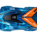 Modré auto s ostrými hranami a dekorom "LASER" a "SPEED" vyniká rýchlosťou a odolnosťou.