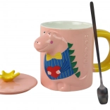 Tento štýlový keramický hrnček kombinuje funkčnosť a hravý dizajn. Ružové telo so žltým uchom dopĺňa viečko so žltou korunkou, ktoré chráni nápoj a dotvára originálny vzhľad. Reliéfny 3D motív dinosaura dodá každému dúšku radosť – ideálny na kávu, čaj aj kakao.