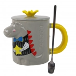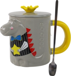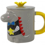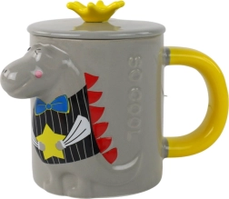 Tento dizajnový keramický hrnček v sivom prevedení zaujme výrazným 3D reliéfom dinosaura v pestrých farbách. Pohodlné žlté uško a hladká glazúra zabezpečujú príjemné každodenné používanie, či už doma, v kancelárii alebo v škole.