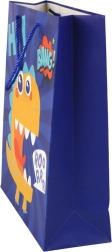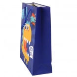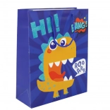 Dodajte svojim darčekom šmrnc s modrou papierovou taškou s veselým dinosaurom. Kvalitný papier s jemným trblietaním a pevné šnúrkové uši zvládnu bezpečne preniesť prekvapenie a zároveň sa postarajú o krásnu prezentáciu.