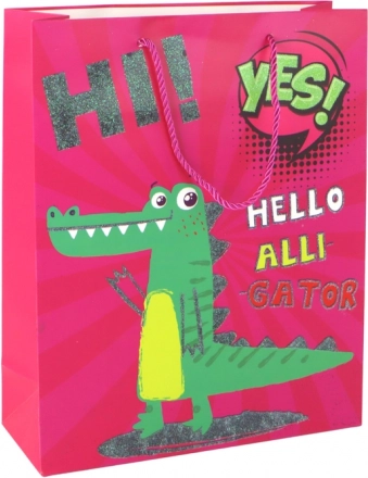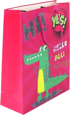 Dodajte svojim darčekom šmrnc! Ružová darčeková taška s krokodílom je ideálna na narodeniny, sviatky aj detské oslavy. Kombinuje atraktívny vzhľad s praktickou funkčnosťou – je ľahká, no dostatočne pevná na bezpečné prenášanie darčekov.