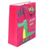 Elegantná ružová papierová darčeková taška s roztomilým motívom krokodíla a jemným trblietaním dodá vášmu darčeku štýlovú prezentáciu. Pevné pletené ružové šnúrkové úchyty zaistia pohodlné prenášanie a bezpečie obsahu. Ideálna na narodeniny, sviatky aj detské oslavy.