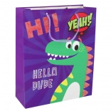 Štýlová darčeková taška s veselým motívom dinosaura v elegantnej fialovej farbe očarí deti aj dospelých. Vďaka pevnému papieru, praktickým uškám a rozmerom 41,5 × 30 × 12 cm je ideálna na najrôznejšie darčeky. Lesklé detaily dodajú baleniu výnimočný vzhľad a zaručia, že váš darček zaujme na prvý pohľad.