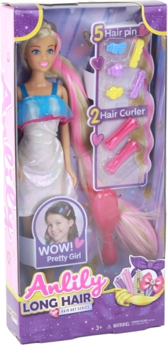 Ponorte sa do sveta módy a kreativity s bábikou Anlily, ktorá zaručí nezabudnuteľnú zábavu. Táto elegantná bábika má dlhé blond vlasy s farebnými akcentmi, čo umožňuje vytváranie rôznorodých účesov a experimentovanie so štýlom.