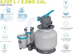 Piesková filtrácia Bestway 8327L/h je jedným z najlepších zariadení na čistenie vody v bazéne. Využíva piesok, čo ju robí ekologickejšou v porovnaní s tradičnými filtrami, ktoré je potrebné meniť každé 2 týždne. Piesková filtrácia si zachováva svoje vlastnosti až jeden rok. S výkonným 280W motorom dokáže čerpať až 8327 litrov vody za hodinu a ponúka 6 rôznych režimov prevádzky vrátane pláchnutia, umývania, filtrácie, recirkulácie, vypúšťania a vypnutia. Má tiež dávkovač chemikálií na udržanie správnej hladiny chlóru a zabezpečenie čistoty vody.