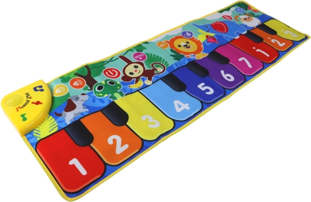 Podložka je vybavená funkciou regulácia hlasitosti a možnosťou stíšenia, čo oceníte v mnohých situáciách. Interaktívne klávesy dávajú deťom možnosť tvoriť vlastnú hudbu a funkcia nahrávania ľahko ukladá ich melodické experimenty.