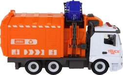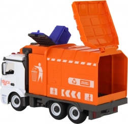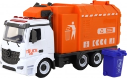 Táto realistická smetiarska súprava ponúka deťom hodiny tvorivej hry. Oranžovo-biele auto s funkčným držiakom na kôš verne simuluje zber odpadu. Setrvačný pohon stačí natiahnuť posunom po rovnom povrchu a auto sa samo rozbehne. Svetlá a zvuky pridávajú hre na autentickosti.