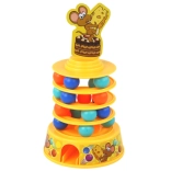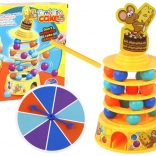 Postavte základňu, vyskladajte farebné guľôčky, pridajte jednotlivé poschodia „syra“ a na vrchol posaďte veselú myšku. Hráč roztočí ruletku, ktorá určí farbu guľôčky, ktorú musí pomocou tyčiniek vtlačiť dovnútra veže. Celá konštrukcia je nestabilná, takže každý ťah sa počíta – prehráva ten, kto vežu prevrhne a myšku zhodí.
