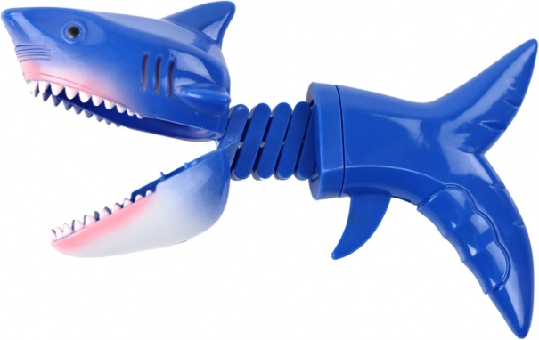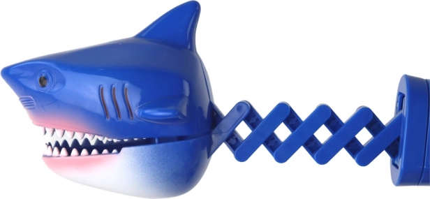 Pružinová hlava žraloka sa po stlačení spúšte rýchlo zavrie a vytvorí efektné chňapnutie, ktoré deti opakovane baví.