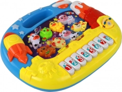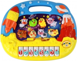 - Motív vesmíru rozvíja detskú predstavivosť a prepája klávesy so zvukmi zvierat a číslami.
