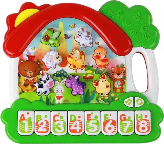 Pianíno obsahuje klávesy označené od A do H, ktoré uľahčujú učenie anglickej abecedy. Každé písmeno je spojené s určitým zvieraťom a zodpovedajúcim zvukom. Dieťa sa tak naučí nielen písmená, ale aj ich výslovnosť a spojí si ich s konkrétnymi zvieratami.