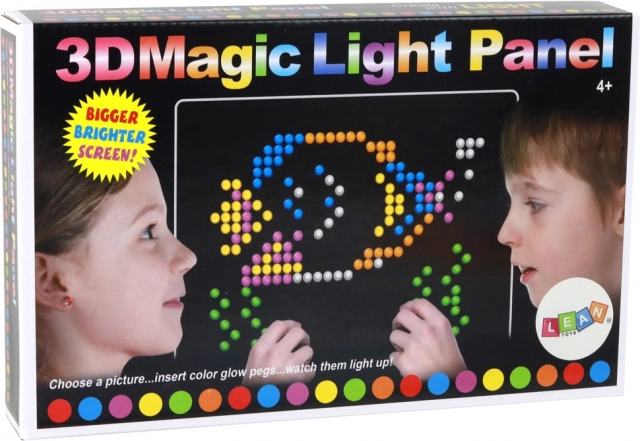 S touto magickou tabuľou budete mať zábavu zaručenú. Vkladajte kolíky do tabule a vytvárajte vlastné 3D konštrukcie. Magický moment prichádza po zapnutí spínača na zadnej strane tabule, keď vaše dielo začne svietiť. Tvorivá zábava pre každého!