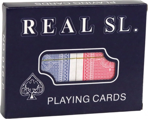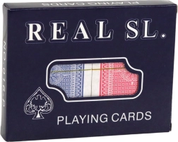 REAL SL herné karty ponúkajú výnimočný herný zážitok s dvomi balíčkami v klasickom formáte. Karty sú vyrobené z kvalitného kartónu s uhlíkovou vložkou a lakované pre zabezpečenie skvelého sklzu a zniženej absorpcie vlhkosti.
