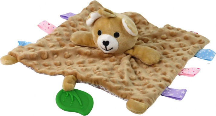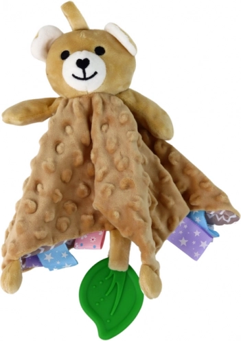 Predstavujeme plyšovú deku s medvedíkom, ktorá kombinuje jemnosť a funkčnosť, aby potešila a upokojila vaše malé dieťa. Obsahuje hryzadlo a farebné stužky pre senzorickú stimuláciu.