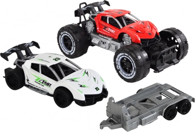 Za autom je pripojený príves, na ktorom je menšie biele športové vozidlo, pripravené na nové výzvy. Čo však robí túto sadu skutočne výnimočnou, je jej mimoriadna funkčnosť. Príves možno od červeného auta kedykoľvek odpojiť, čo vám dáva možnosť vytvárať ešte zložitejšie príbehy a rozvíjať fantáziu vášho dieťaťa.