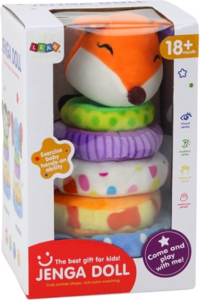 Roztomilá plyšová vzdelávacia pyramída s líškou poteší batoľatá veselými farbami a mäkkým materiálom. Deti skladajú farebné krúžky od najväčšieho po najmenší, trénujú jemnú motoriku, logické myslenie a učenie farieb a veľkostí. Bezpečná hračka s certifikáciou CE a normou EN71, vhodná od 18 mesiacov.