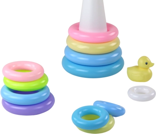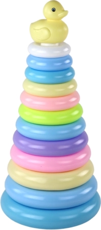 Deti skladajú krúžky od najväčšieho po najmenší a pritom spoznávajú farby, veľkosti a poradie. Podporuje logické myslenie aj vnímanie priestoru.