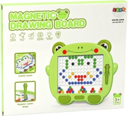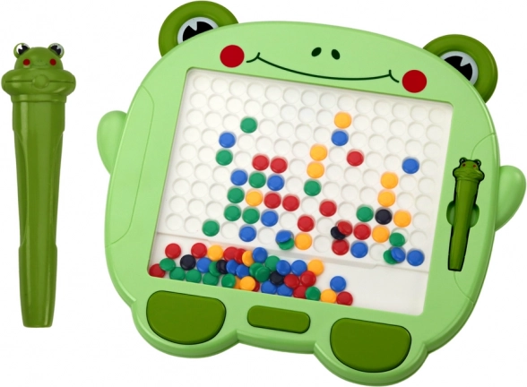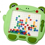 Stredom tabule je veľká biela plocha so záložkami, ktorá je ideálnou plochou na usporiadanie magnetických korálikov. Z týchto korálikov, ktoré sú k dispozícii v rôznych farbách – čiernej, modrej, žltej, červenej a zelenej – možno vytvárať rôzne vzory a obrázky. Cez priehľadnú stenu, ktorá chráni kresbu pred náhodným poškodením, môžu deti ľubovoľne aranžovať svoje kompozície pomocou špeciálneho magnetického pera s motívom žabky.