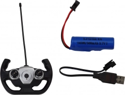 Ovládanie je zabezpečené pomocou diaľkového ovládača tvarovaného ako volant. Súčasťou je aj dobíjacia batéria a USB kábel pre maximálne pohodlie.
