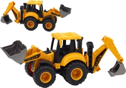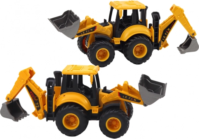 Stavebné vozidlo bager dve lyžice nastaviteľné žlté