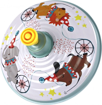 Náš točiaci sa vŕšok je klasickým symbolom detstva, ktorý teší a fascinuje dodnes. Je vyrobený z kovu, takže poskytuje nielen odolnosť, ale aj autentický charakter tradičnej hračky. Zdobený motívom zvieratiek v cirkuse získava točiaci sa vršok jedinečné kúzlo, ktoré dokonale ladí s hravou atmosférou.