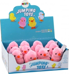 Roztomilé naťahovacie plyšové kuriatko v ružovej farbe, ktoré po natiahnutí veselo poskakuje. Bez batérií, mäkké a hebké, skvelá dekorácia aj hračka pre deti od 3 rokov. Certifikácia CE a zhoda s EN71.