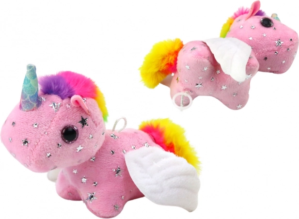 .Náš jednorožec nie je len obyčajná plyšová hračka – je to kamarát, ktorý je malým objaviteľom vždy k dispozícii. Vďaka svojim malým rozmerom skvele padne do každej malej ruky a poskytuje pohodlie a potešenie pri hre. A jeho mäkká ružová srsť s jemnými striebornými hviezdičkami, farebný chvost a hriva mu dodávajú jedinečné kúzlo, ktoré poteší každé dieťa.