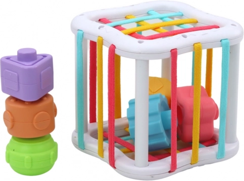 Senzorický blok spojený pružnými pásikmi je ďalšia fascinujúca hračka, ktorá prebúdza zmysly batoľaťa. Prevliekanie kvádra gumičkami sa môže spočiatku javiť ako náročná úloha, no je to skvelá príležitosť na rozvoj myslenia, kombinovania a kreatívneho riešenia problémov, prispôsobená vývinovej úrovni vášho batoľaťa.