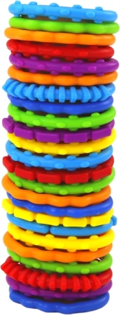 Prítomnosť otvorov v každom náramku navyše umožňuje náramky ľahko spájať, čo podporuje rozvoj manipulačných zručností a motorickej koordinácie dieťaťa. Dieťa sa môže s náramkami hrať a kombinovať ich v rôznych zostavách, čo podporuje rozvoj jeho predstavivosti a kreativity.