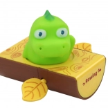 Natahovacia hračka do vane – dinosaurus v loďke je ideálny spoločník na radostné a kreatívne kúpanie. Stačí otočiť spodným naťahovacím kolieskom, položiť loďku na vodu a sledovať, ako sa vďaka dvom bočným „listovým“ pádlujúcim lopatkám sama pohybuje po hladine. Farebný dinosaurus na palube nabáda k rozprávaniu príbehov a hrám na role.