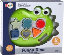 Objavte zábavný zmyslový sorter v tvare dinosaura, ktorý rozvíja jemnú motoriku, rozpoznávanie tvarov a farieb aj zmysly vášho dieťaťa. Svetelné efekty, veselé melódie a 6 rôznych geometrických tvarov s prvkami ako hrkálka, zrkadielko alebo výstupky pre hmat zaručia dlhé hodiny bezpečnej a podnetnej hry.