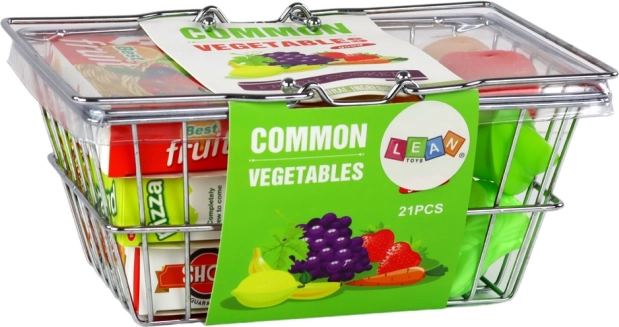 Tento autentický detský nákupný košík z kovu premení každú hru na skutočné nakupovanie. Sada obsahuje pestrý výber potravín – od ovocia a zeleniny až po pizzu a džús – takže deti môžu trénovať rozpoznávanie potravín, počítanie a role-playing situácie z každodenného života.