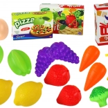 - Košík, džús, pizza, 2× mrkva, 2× jahoda, 2× vajce, hrozno, banán, 2× kukurica, ananás, 2× šalát, 2× citrón, brokolica, 2× karambola, originálne balenie