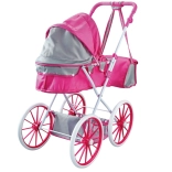 Ružový kočík pre bábiky podporuje nápaditú hru, empatiu a rozvoj sociálnych zručností. Vďaka odolnej kovovej konštrukcii je stabilný a pripravený na dlhé hodiny zábavy. Veľké penové kolesá uľahčujú jazdu po chodníku aj doma, takže malí opatrovatelia môžu vziať svoju obľúbenú bábiku kamkoľvek.