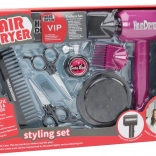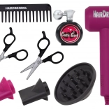 Súčasťou sady sú aj nožnice na vlasy, rovné aj zúbkované, ktoré umožňujú rôzne efekty a štýly účesov. Dlhý čierny hrebeň uľahčuje česanie a úpravu vlasov a dodáva hre na realistickosti. Imitácia fľaštičky s parfumom a VIP karta pre kaderníka dodávajú hre ďalšie kúzlo a zábavu a umožňujú deťom vytvárať vlastné jedinečné účesy.