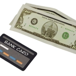 Súčasťou balenia sú plastová karta a falošné bankovky na rozvoj predstavivosti detí.