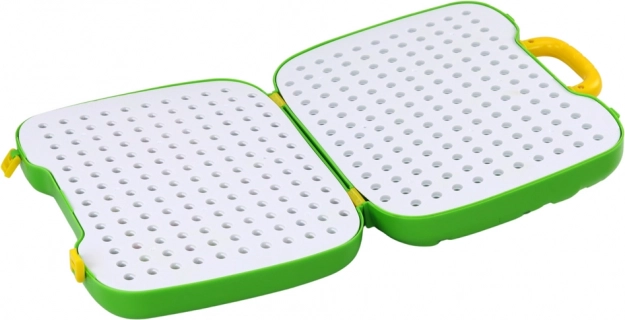 Kufrík sa ľahko mení na stolček s pevnými nohami, ideálny pre kreatívne hry a stavanie.