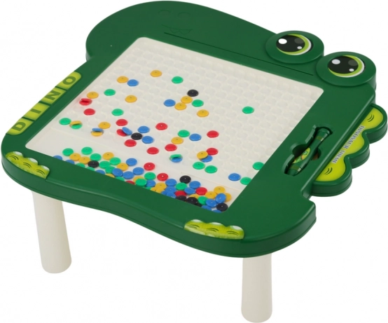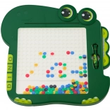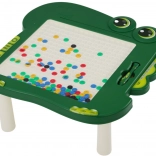 Tabuľa obsahuje priehľadný panel, za ktorým sa nachádzajú farebné korálky s magnetmi. Korálky vo farbách čierna, zelená, modrá, červená a žltá umožňujú tvorbu rôznorodých obrázkov, čo podporuje detskú kreativitu a predstavivosť. Súčasťou sady je magnetické pero, ktoré uľahčuje vytváranie obrázkov a pridáva na zábavnosti.